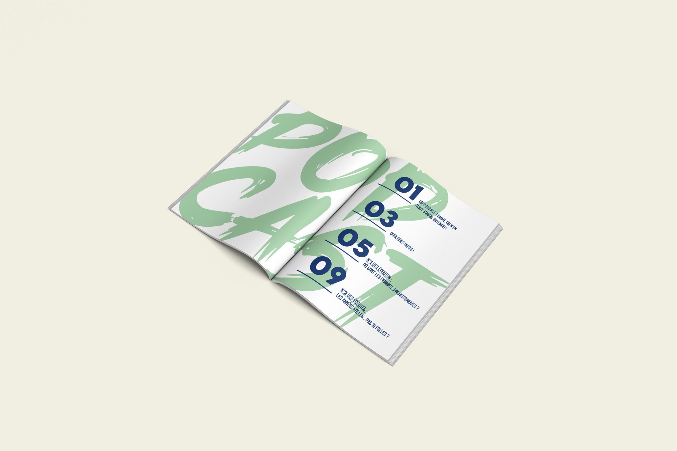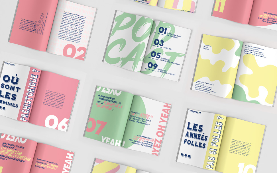 J’ai réalisé ce fanzine en m’amusant à travailler uniquement avec les formes, la typographie et les couleurs. Mon but était ainsi de retranscrire le caractère léger et fun du podcast, en jouant avec les formes.